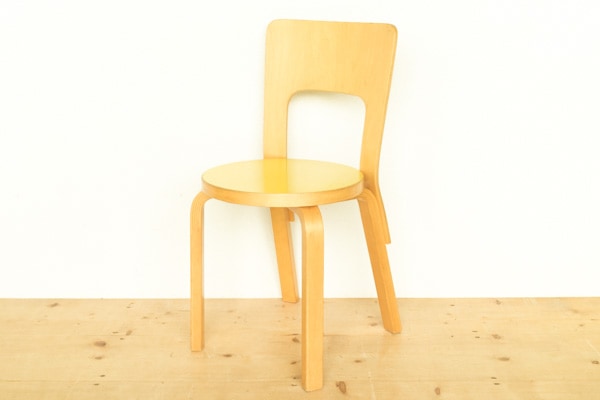 アルヴァ・アアルトデザインのチェアNo.66が入荷いたしました。ラミネートは、簡単に言うと色付きのプラスチックパネルが座面にはめられており、ペイントのように色が剥げる心配はなく、水・傷には強いといった特長があります。