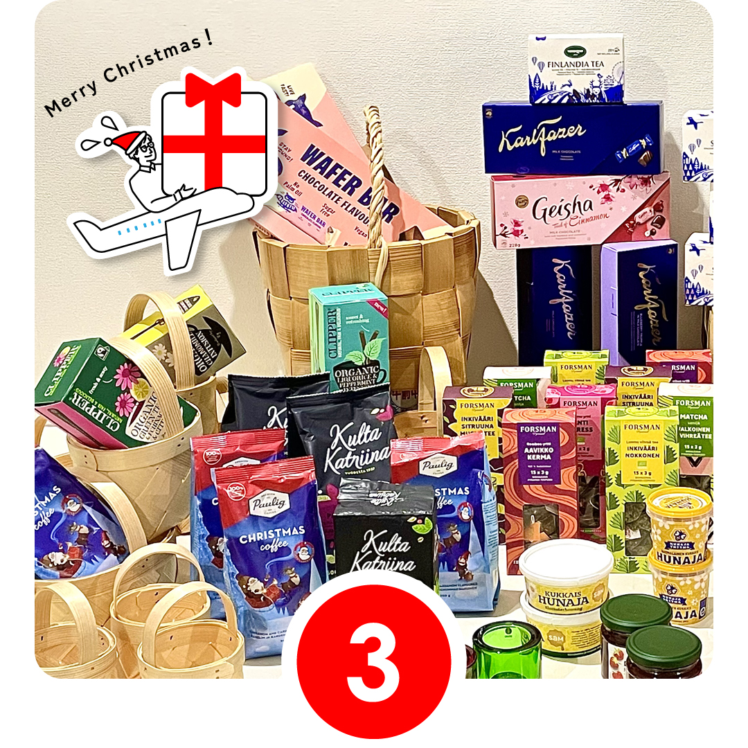 クッキーやチョコレート定番の美味しいお菓子に、コーヒーやジャムなどなど!オーナーからの北欧クリスマスプレゼントです!