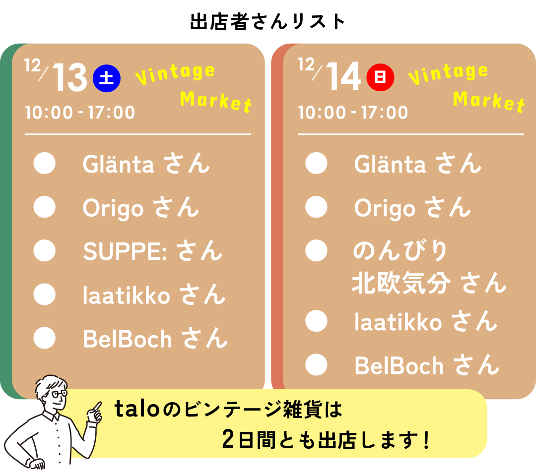 12.13[土]14[日] 10:00-17:00※2日間限定 talo駐車場