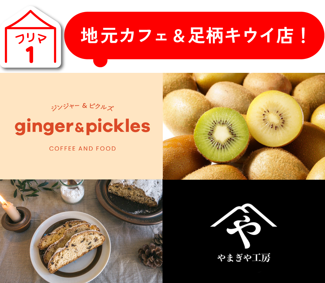 足柄キウイの栽培を行い販売しているキウイショップ『やまぎや工房』さんに加えて、今年は他の出店者さん参加型ビンテージマーケットも出店してくださいます!