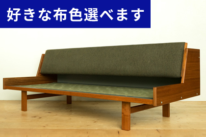 ファブリックは50色以上の新品ファブリックの中から好きな色の張地を選べます。また、背もたれとマットの張地を、違う色で張り分け希望のお客様には、追加料金8,800円(税込)で張替え可能なオプションもございます。