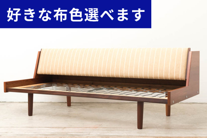 お客様が気持ちよくご利用いただけるよう、taloでデイベッドをご購入いただくと、使用感のある当時の生地は剥がして、弊社で新品のファブリックに交換します。